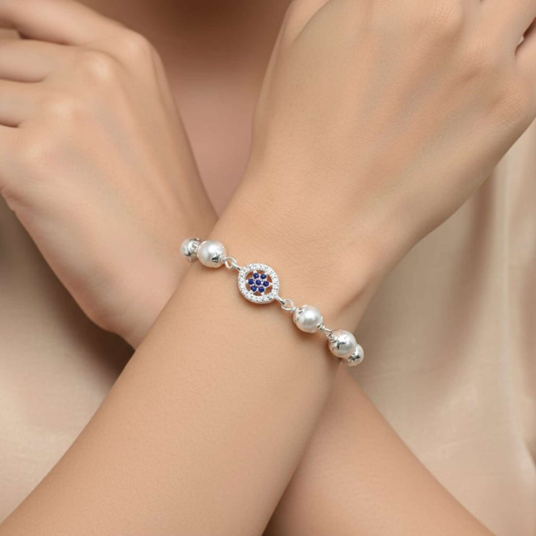 silver Pure Silver Black Bead Bracelet - Modern Protective Nazariya 967- 4600