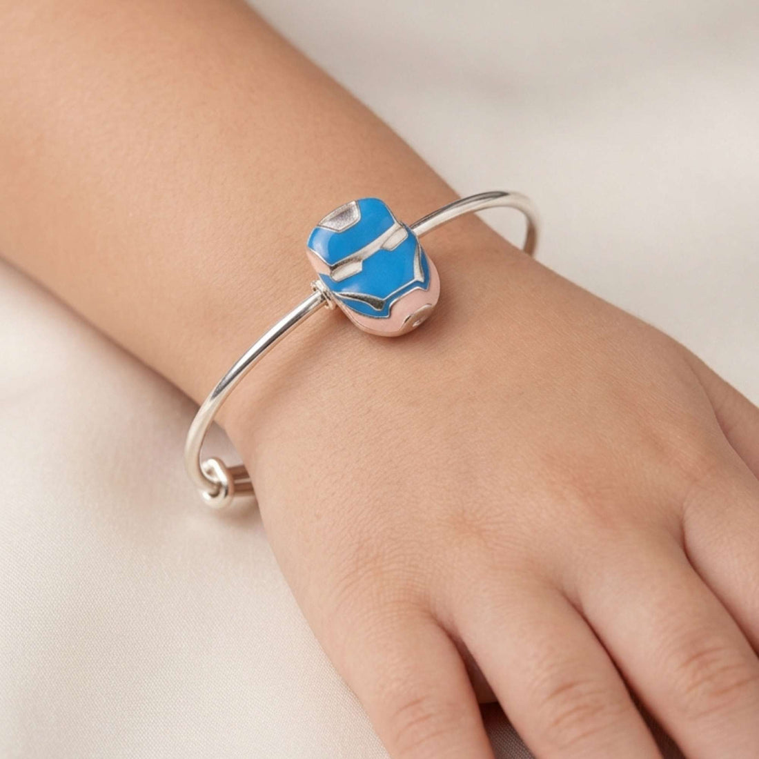 Shop our fun 925 sterling silver kids bangle featuring a vibrant blue superhero mask. This...