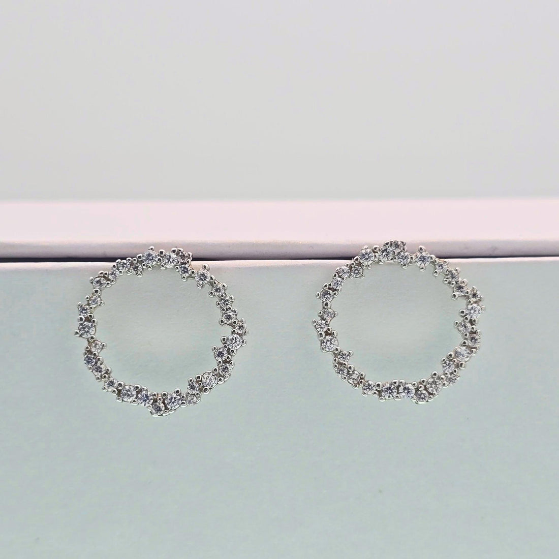 925 silver Circle Stud Earrings - Real Silver Dainty Crystal Wreath Studs 183-22000