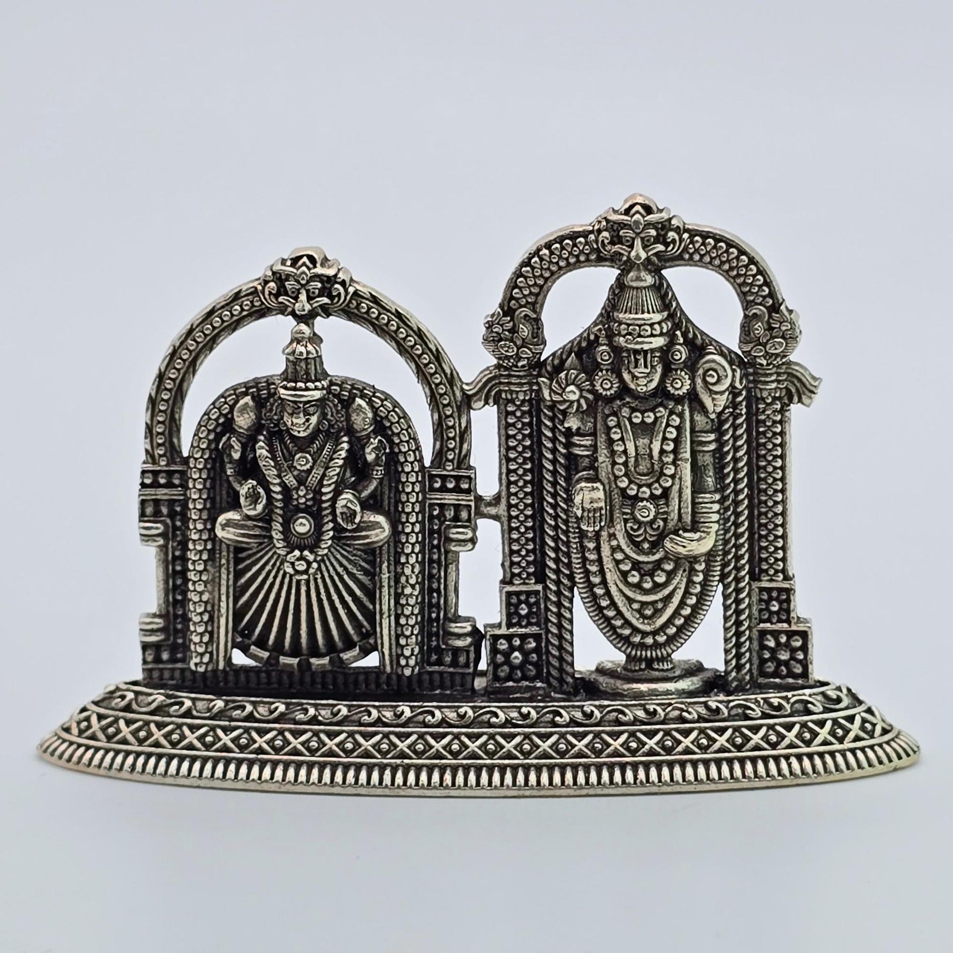 Pure silver Lakshmi and Tirupati Balaji idol featuring exquisite antique craftsmanship. An auspicious and powerful gift for newlyweds, housewarmings, and spiritual protection. High-quality silver puja article for home mandirs in Canada and USA.