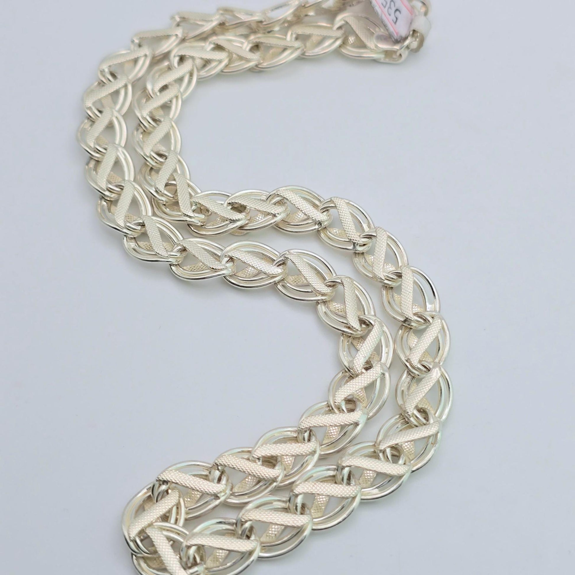 Make an elegant statement with this 925 Sterling Silver necklace featuring a unique infinity-style textured link design. Handcrafted with a high-polish finish, this durable chain offers a sophisticated sparkle for any occasion. Shop premium silver jewelry.